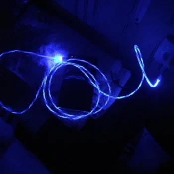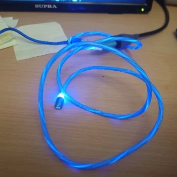 Cool cord, with illumination. Soft (elastic), it is visible from the distance that charging is made.